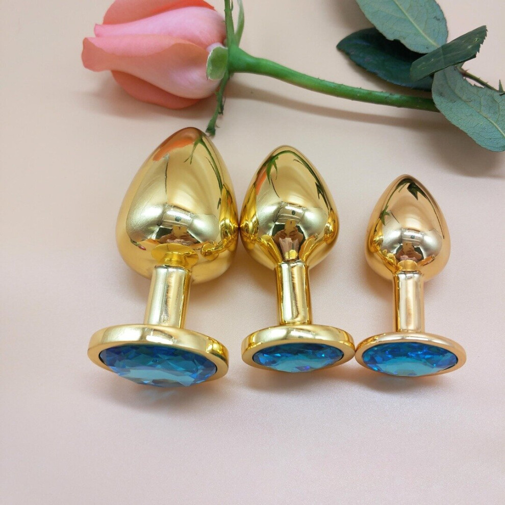 The Room Of Doom's - 3 Gold, Jewelled Butt Plugs - Sapphire Blue