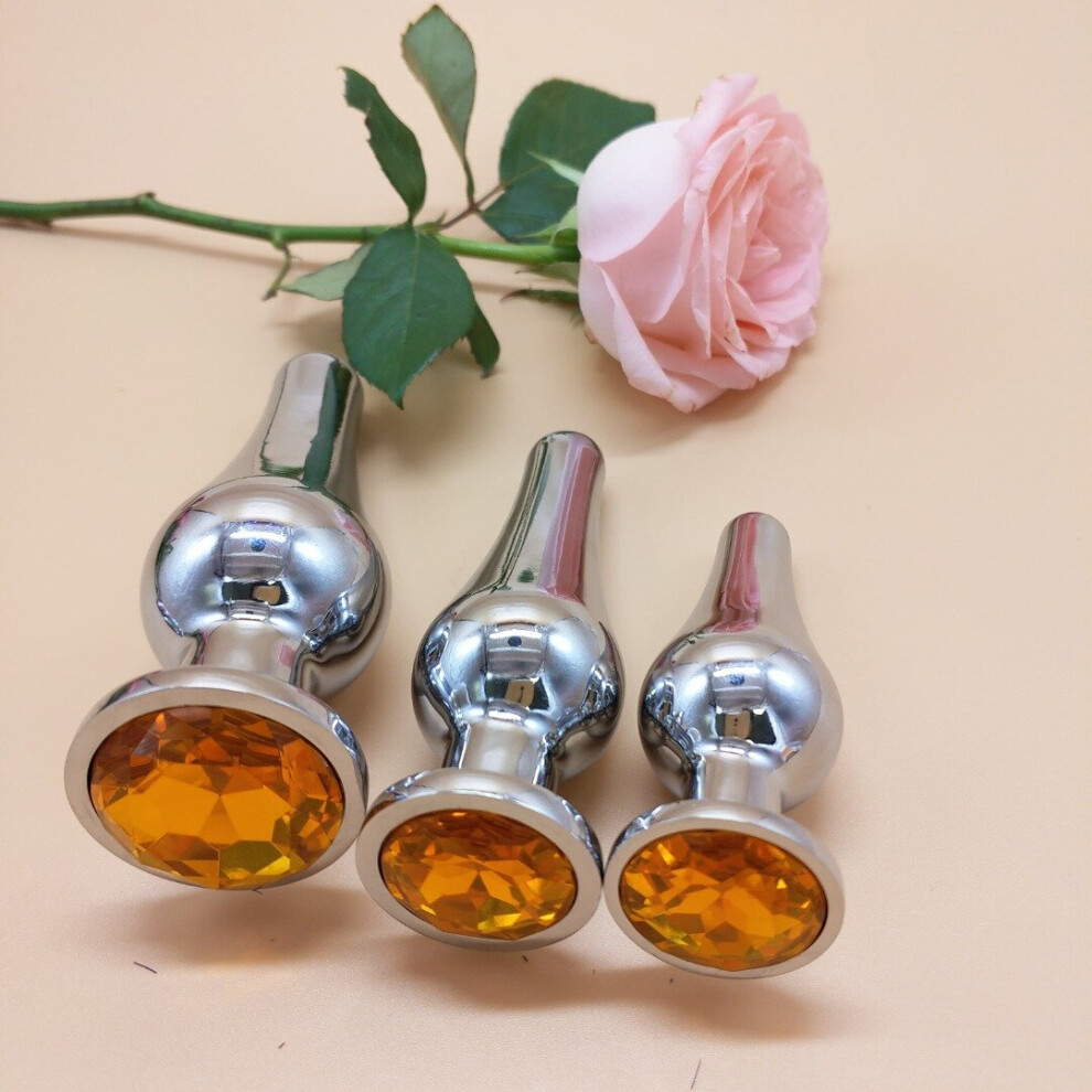 The Room Of Doom's - 3 Gold, Jewelled Butt Plugs - Bright Orange