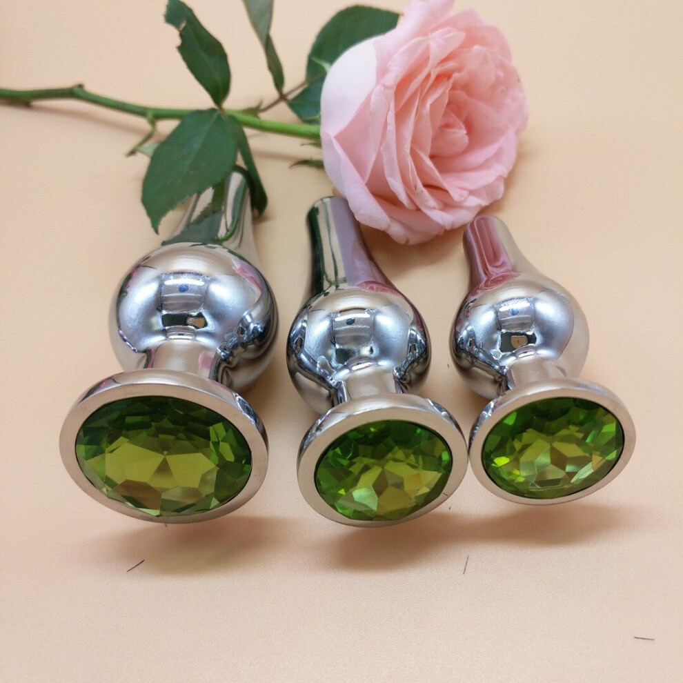 The Room Of Doom's - 3 Jewelled, Point Butt Plugs - Emerald Green