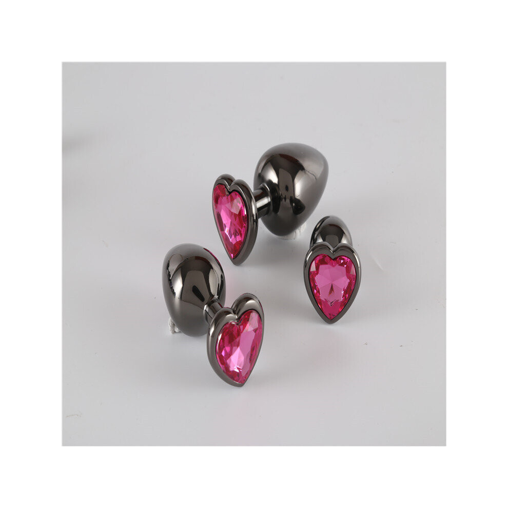 The Room Of Doom's - 3 Space Grey, Heart Shaped Jewelled Butt Plugs - Ruby Red