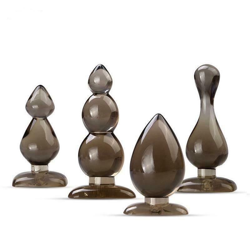 4Pcs Anal Plug Set for Men & Women Transparent Black TPE Butt Plugs Comfortable
