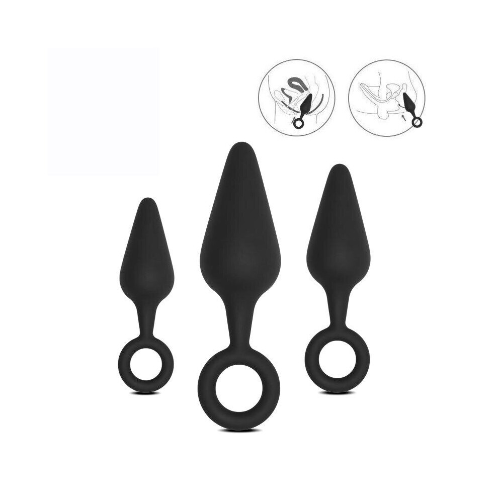 3pcs Silicone Anal Expanders - Grey Hollow Tunnel Anal Training Butt Plugs Set