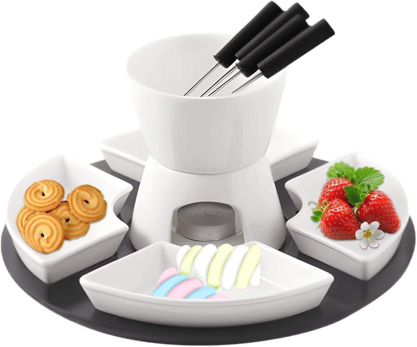 Ceramic Chocolate Fondue Pot Set with 4 Forks and 4 Dishes, 300ml Butter...