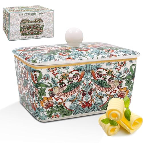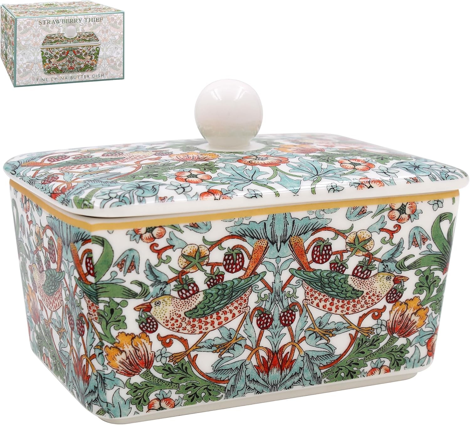 The Leonardo Collection William Morris Strawberry Thief Butter Dishes for Kitchen & Home | Dishwasher Safe Butter Dish with Lid for Keep Butter Fresh | Durable BPA-Free Butterdish for Butter Storage