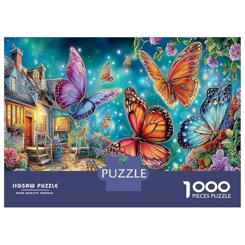 Butterflies 1000Piece JigsawPuzzlesNight Garden Butterflies KidsforAdult Challenging Brainteasing Age12+byth HomeDecoration Uncover The Puzzle 52x38cm/1000pcs