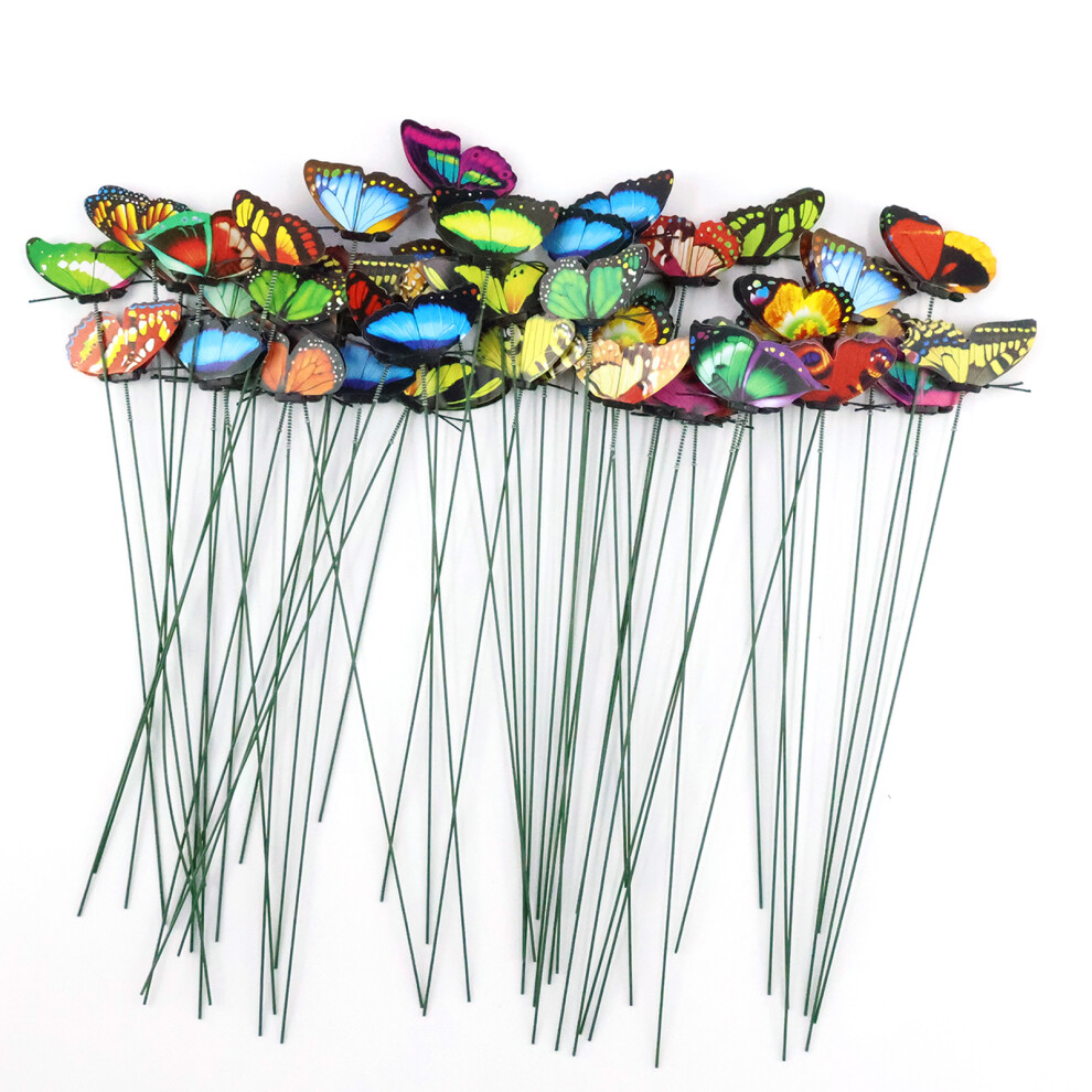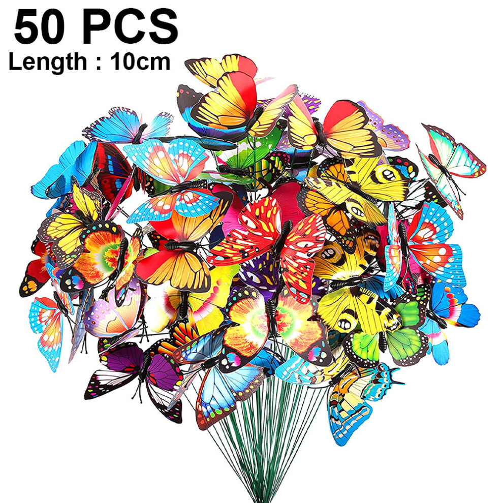Decorative Garden Stakes, 50Pcs Beautiful Colors, Lifelike Butterflies Fluttering With The Wind, Suitable For Indoor Outdoor Use, Add Charm To Any Set