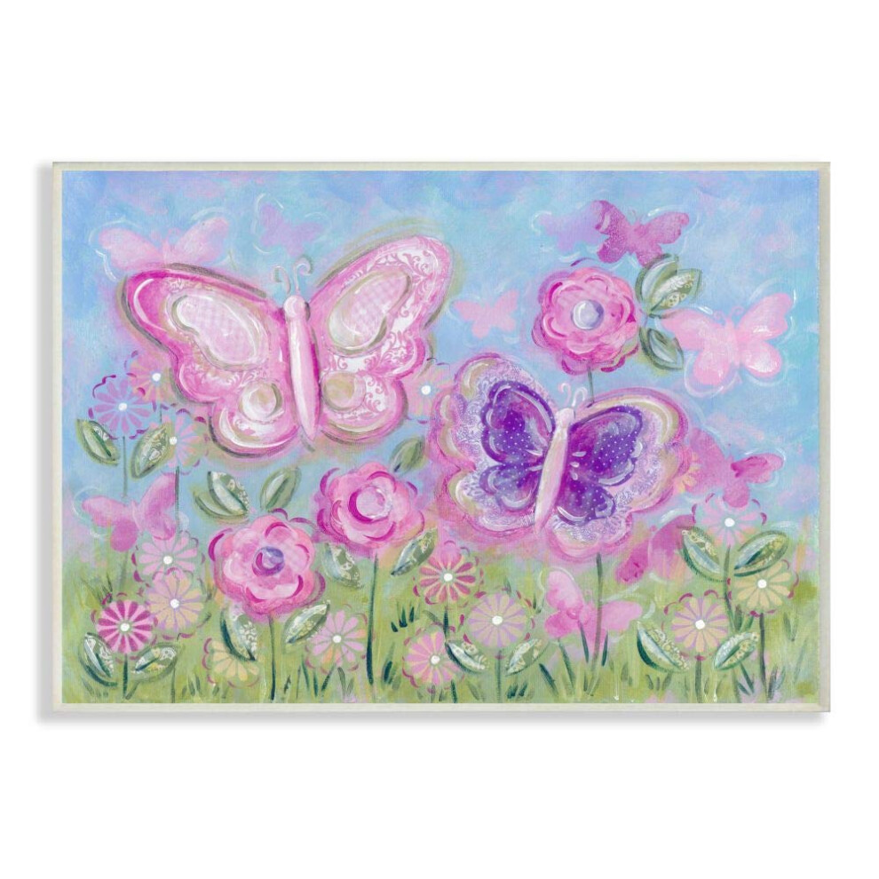 The Kids Room by Stupell Pastel Butterflies in a Garden Rectangle Wall Plaque