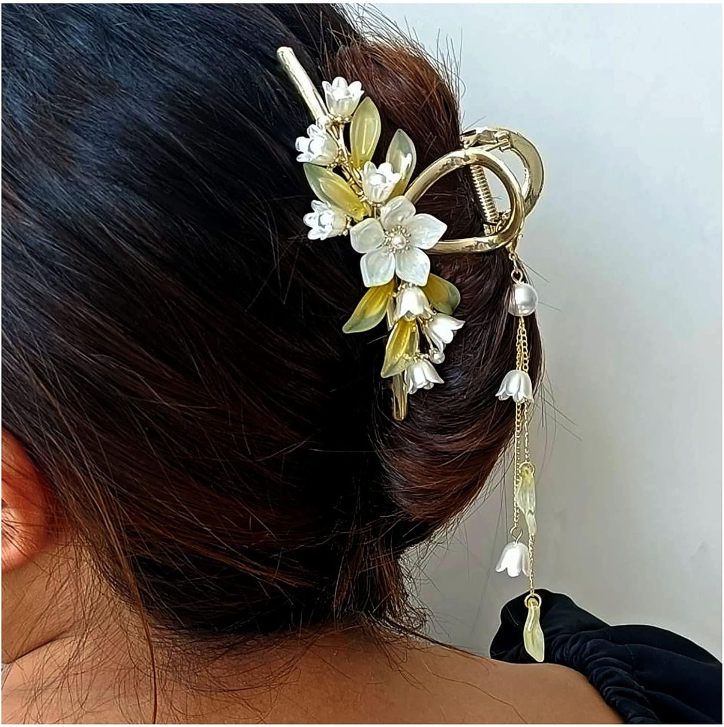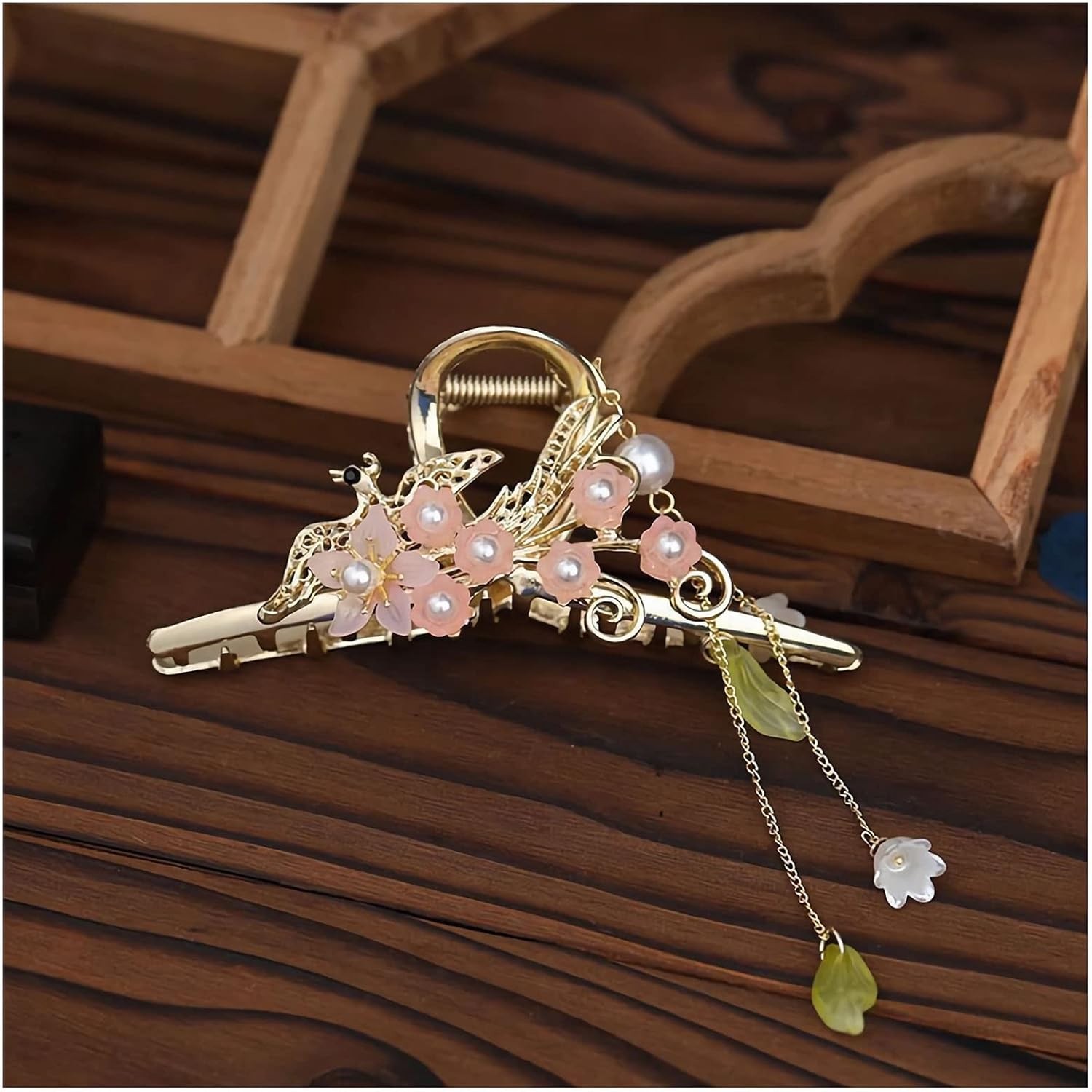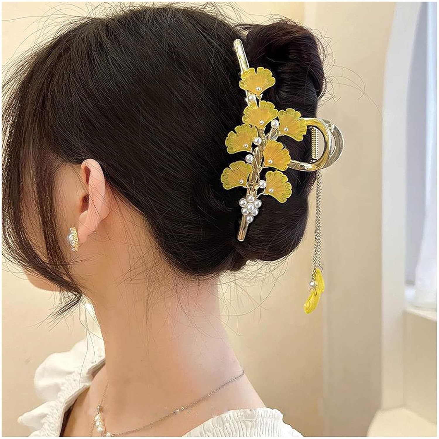 Butterfly Flower Hair Barrettes Vintage French Pearl Ginkgo Leaf Tassels Claws