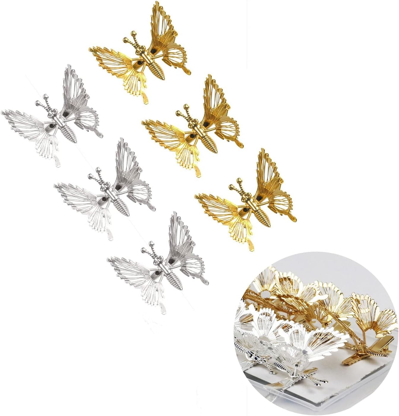 zalati Hair Clips 6pcs 3D Moving Butterfly Metal Hair Barrettes for Wedding Par