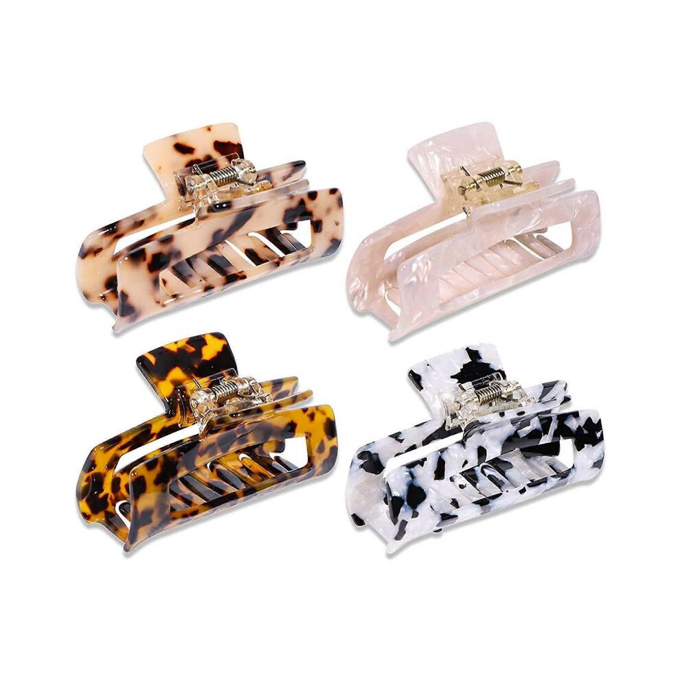 4PCS Hair Claw Clips, Acrylic Hair Banana Barrettes, Celluloid French Butterfly Jaw Clips,Tortoise Shell Grip Pin Teeth Clamp -Leopard print Stylish H