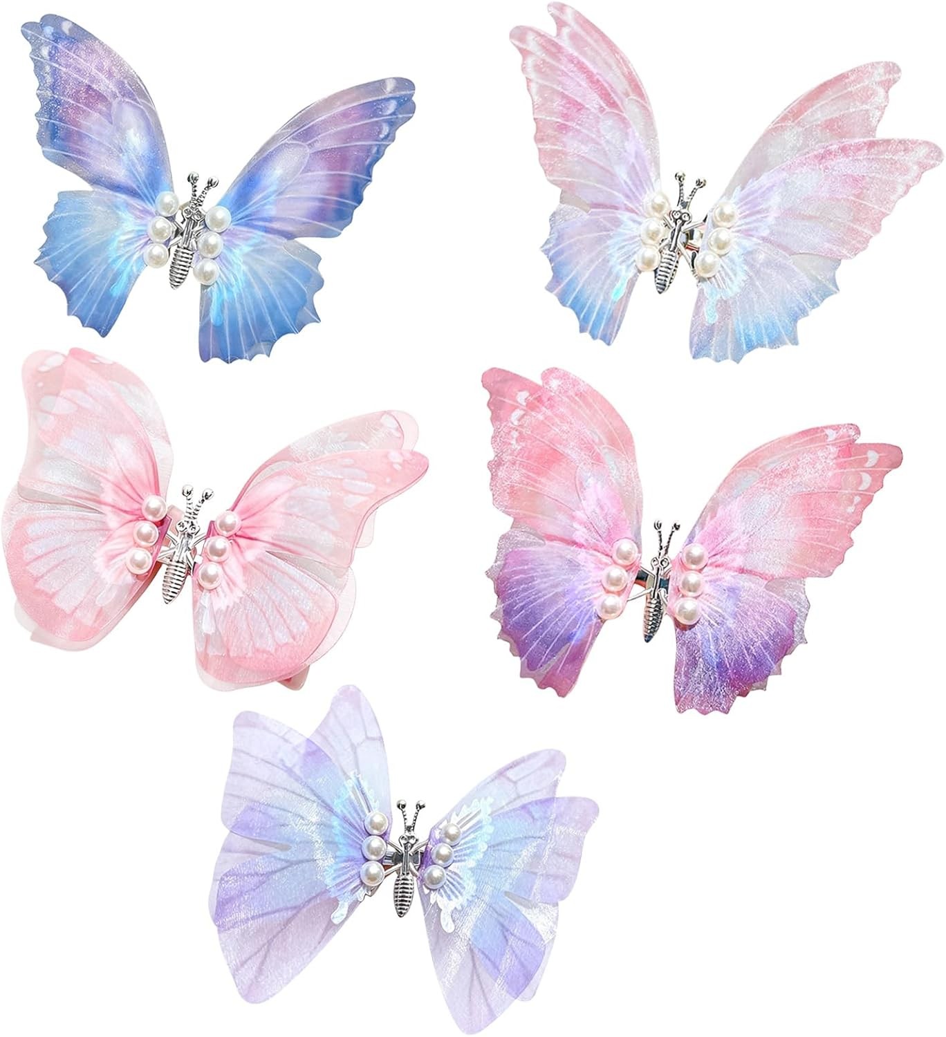 5Pcs 3D Butterfly Hair Clips Colorful Moving Wings Barrettes Hair Accessories f