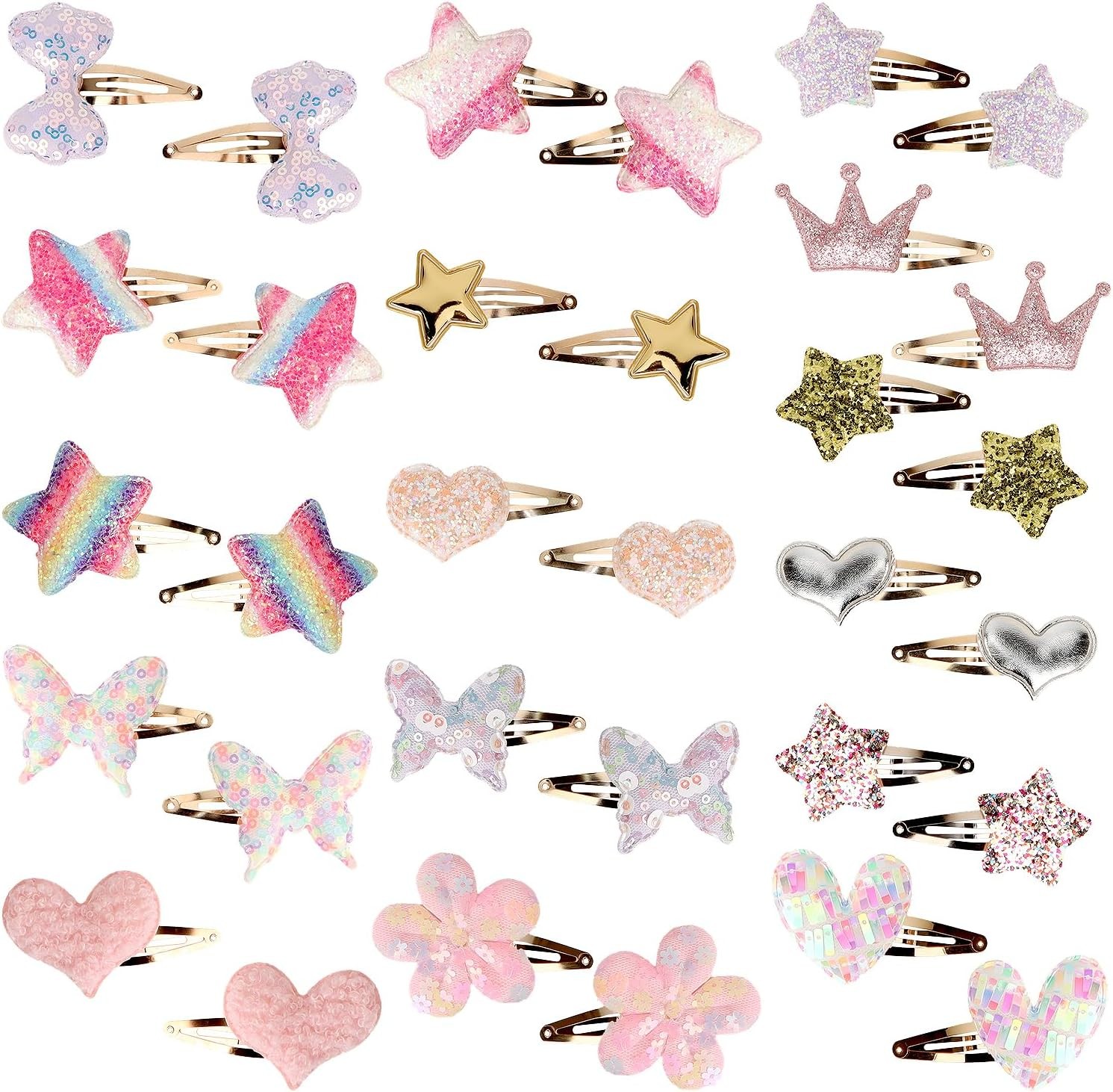 32Pcs Hair Clips for Girls, Small Star Butterfly Heart Shaped Barrettes, Sparkl