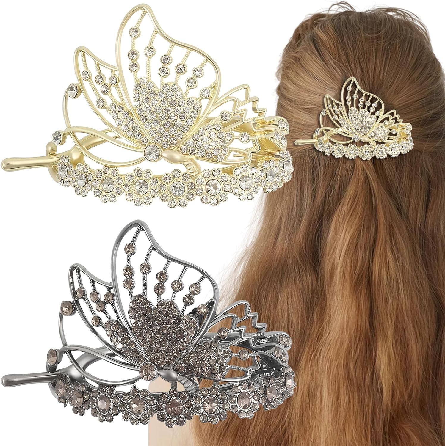 4 PCS Hair Barrettes for Women, Butterfly Crystal Rhinestones Barrettes,Rhine
