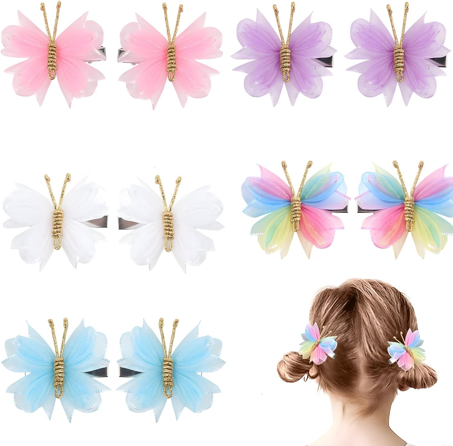 10PCS Mini Butterfly Hair Barrettes - Colorful Tulle Mesh Hair Clips for Girls,