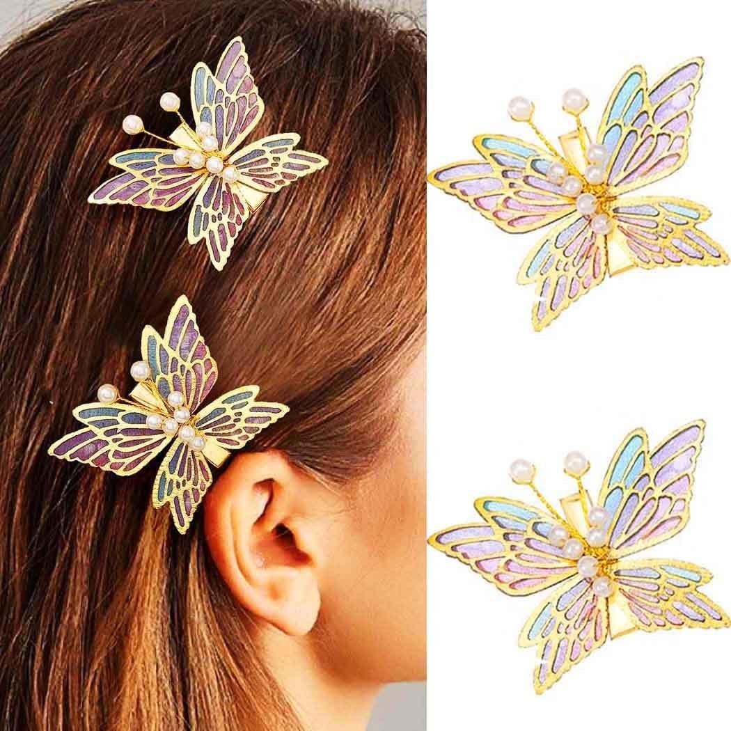 2PCS Butterfly Hair Barrettes for Women, Ponytail Holder Headwear Bridesmaid Ha