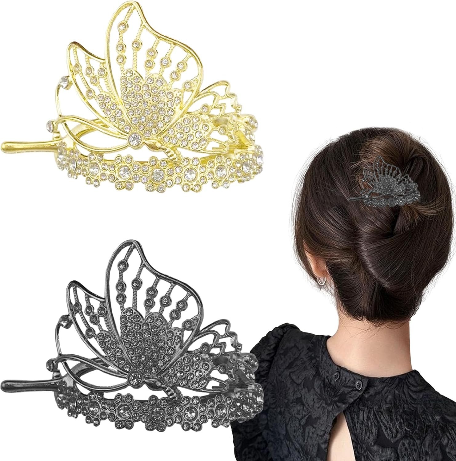 2PCS Butterfly Hair Barrettes for Women, Elegant Gold HairBun Claws Clip Metal