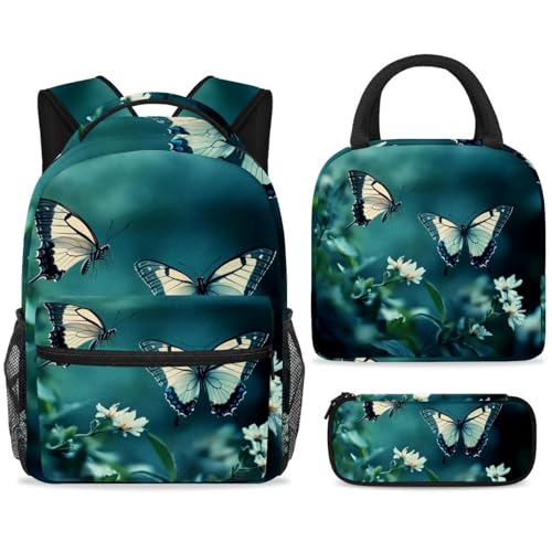 ewndhtse School Backpack Set with Lunch Bag Pencil Case, 3 Pcs School Bookbags Set Travel Rucksack Casual Daypack for Teens Girls Boys Primary Junior Middle - Beautiful Butterfly
