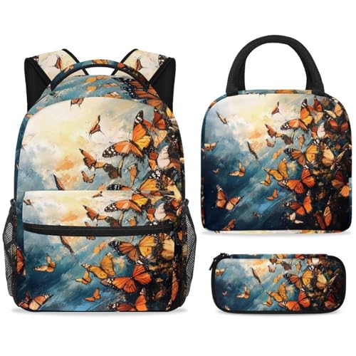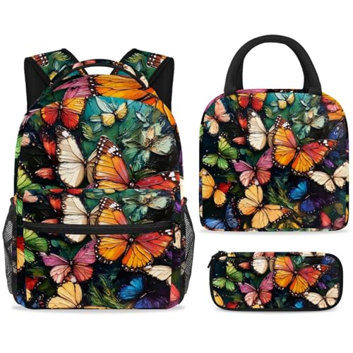 ewndhtse School Backpack Set with Lunch Bag Pencil Case, 3 Pcs School Bookbags Set Travel Rucksack Casual Daypack for Teens Girls Boys Primary Junior Middle - Butterfly Painting