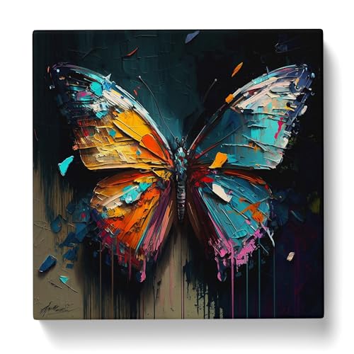 Butterfly Palette Knife Painting Canvas Print | Gallery Wrapped 30mm Frame Wall Art | 20x20 inches | Ready to Hang | Modern Animals Picture | Living Room Bedroom Lounge Office
