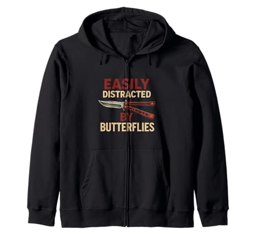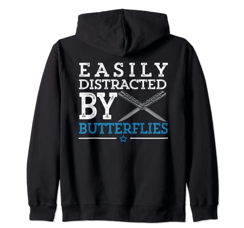 Easily Distracted By Funny Balisong Butterfly Knife Lovers Zip Hoodie