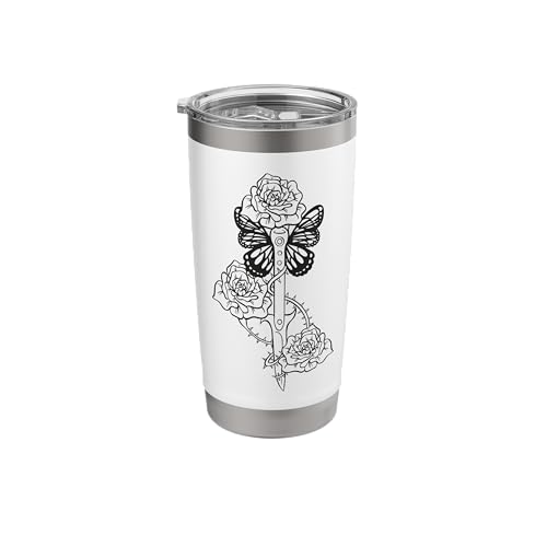 Tattoo Knife Roses Butterfly Grunge Aesthetic Goth Stainless Steel Insulated Tumbler
