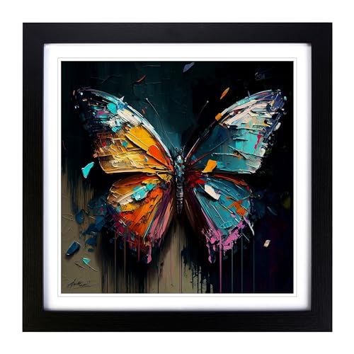 Butterfly Palette Knife Painting Framed Print | 18x18 Inch Black Framed Wall Art | Ready to Hang | Modern Animal Picture | Living Room Bedroom Lounge Office