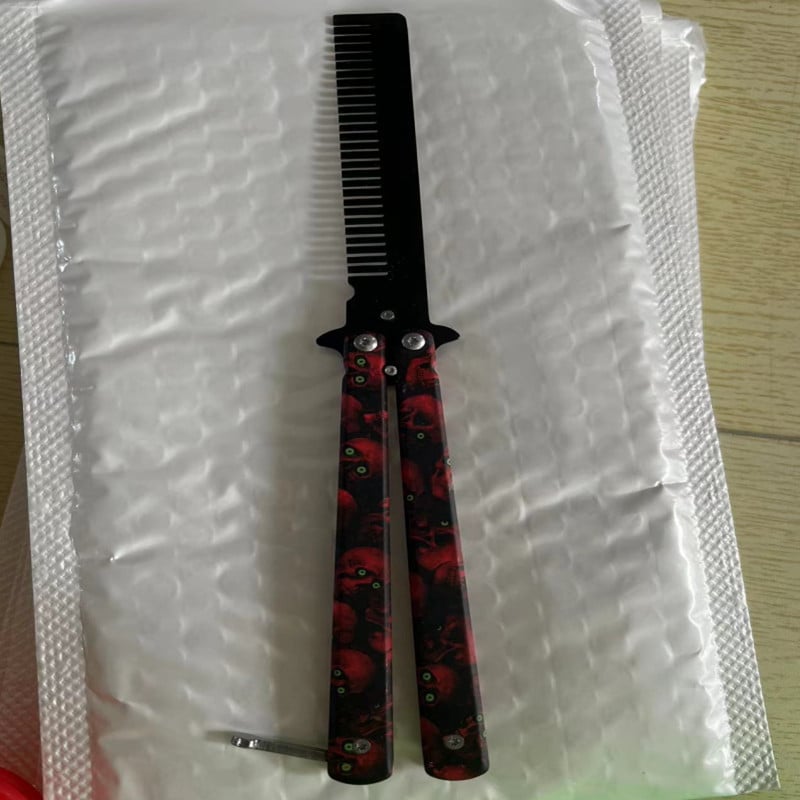 Portable comb stainless steel foldable salon hair styling tools butterfly knife training tools