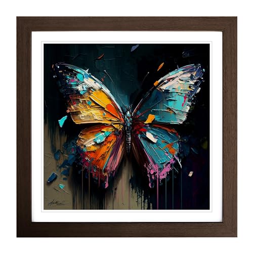 Butterfly Palette Knife Painting Framed Print | 18x18 Inch Walnut Framed Wall Art | Ready to Hang | Modern Animal Picture | Living Room Bedroom Lounge Office