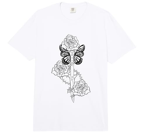 Tattoo Knife Roses Butterfly Grunge Aesthetic Goth Comfort Colors Adult Heavyweight T-Shirt