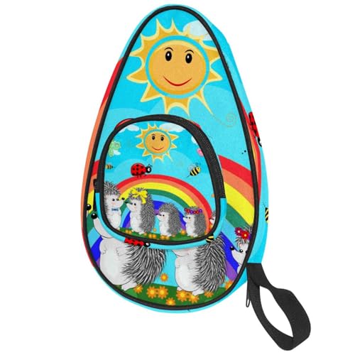 lcndlsoe Ping Pong Paddle Bag, Spring Rainbow Hedgehogs Ladybirds Butterfly Sun Table Tennis Racket Cover Case