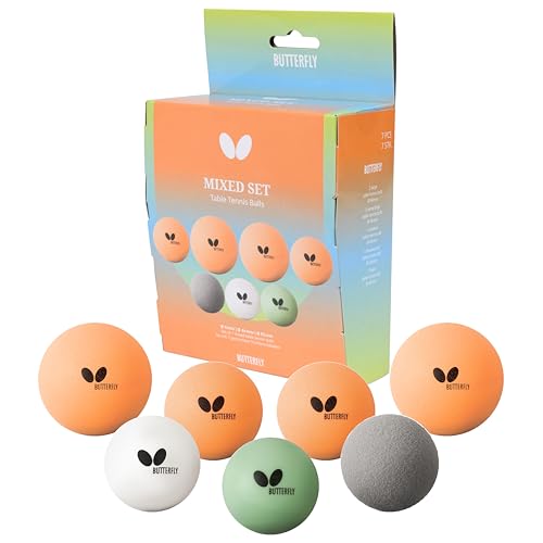 Butterfly Mixed Coloured Ping Pong Balls Set – 7-Pack Table Tennis Balls (Whisper, Glowing, Outdoor, Large & Jumbo Balls) for Fun, Training & Versatile Play