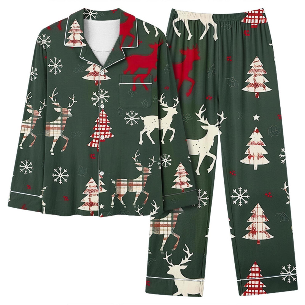 Lovely Fashion-Forward Christmas Pjs V-Neck Long Sleeve Button-Up Top for Women Elastic Waist Pants Comfortable Pajamas Nightwear S-2XL