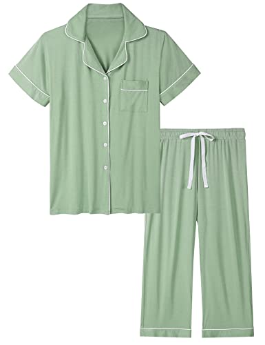 Amorbella Bamboo Pyjamas for Women Summer Cooling Pjs Button Up/Down/Front Pajamas(Sage Green, Large)