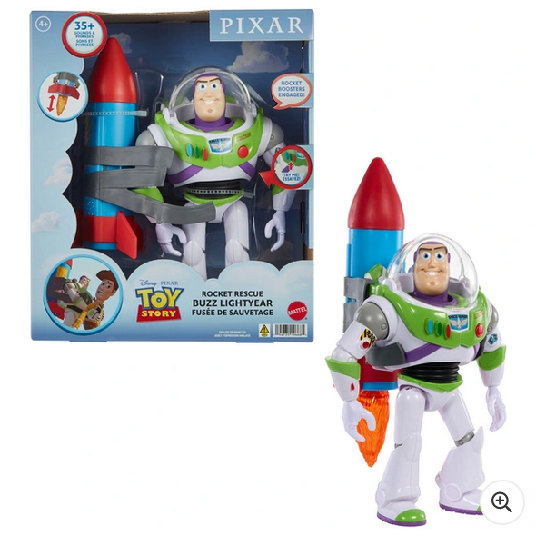 Mattel Disney and Pixar Toy Story Buzz Lightyear 12-in Scale Action Figure Toy with Rocket & 20 Plus Phrases & Sounds, Rocket Rescue Pack Buzz Pack, HTR73