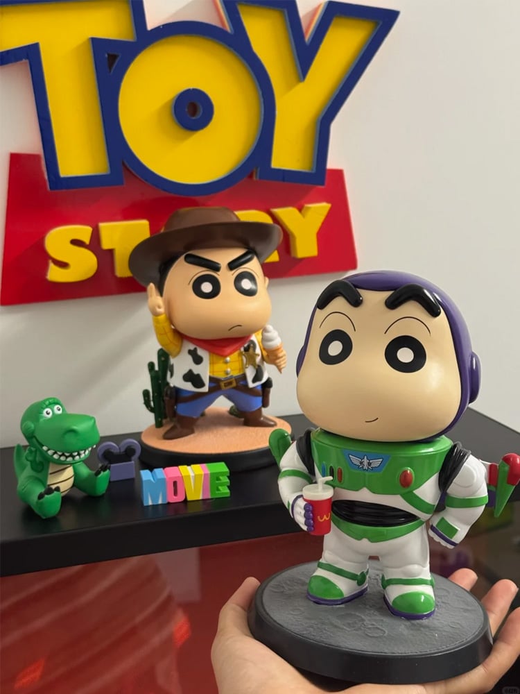 Cartoon Crayon Xiaoxin Cos Woody Buzz Lightyear Action Figure Trendy Toys Car Ornament Desktop Decoration Statue Collection Gift