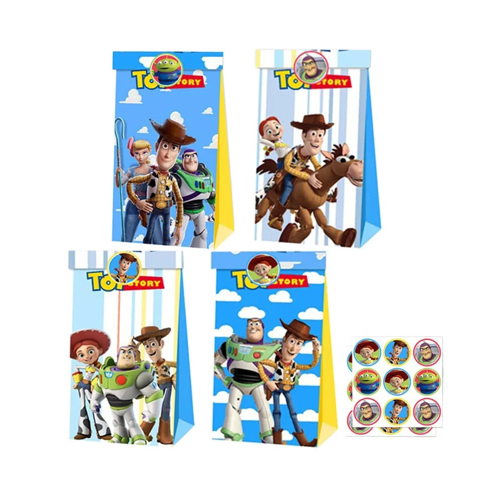 (12pcs paper bag) Toy Story Birthday Party Supplies Buzz Lightyear Party Favors Gift Goodie Bag Glasses Mask Straw Stickers for Kids Pinata Toys