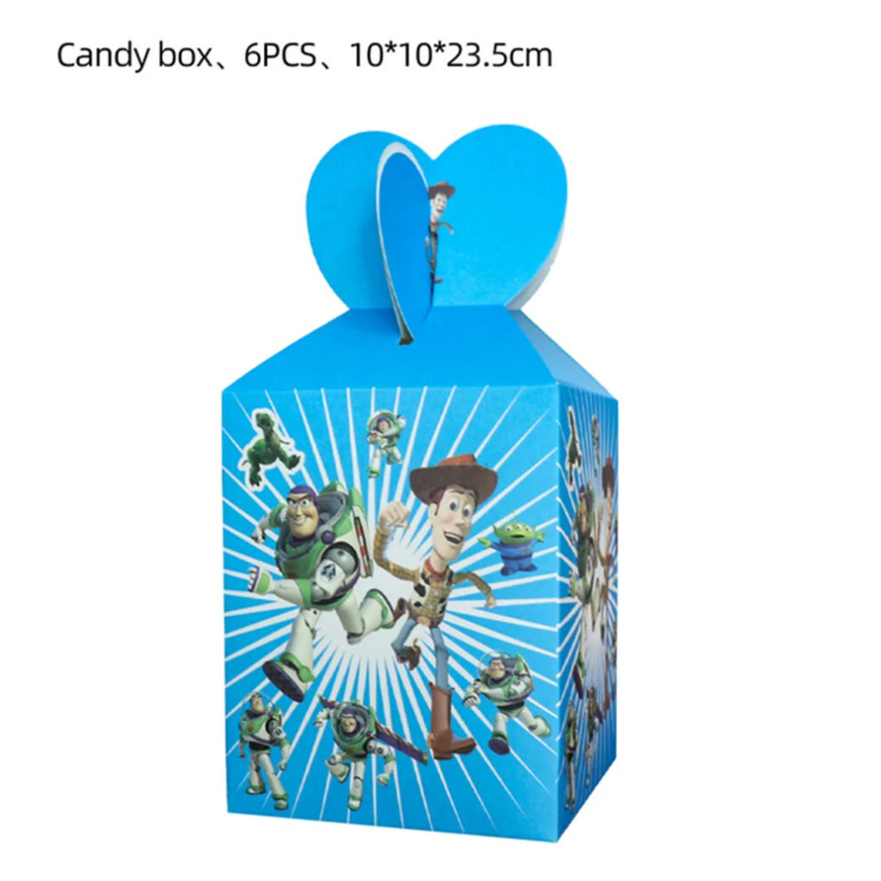 (6pcs candy box) Toy Story Birthday Party Supplies Buzz Lightyear Party Favors Gift Goodie Bag Glasses Mask Straw Stickers for Kids Pinata Toys