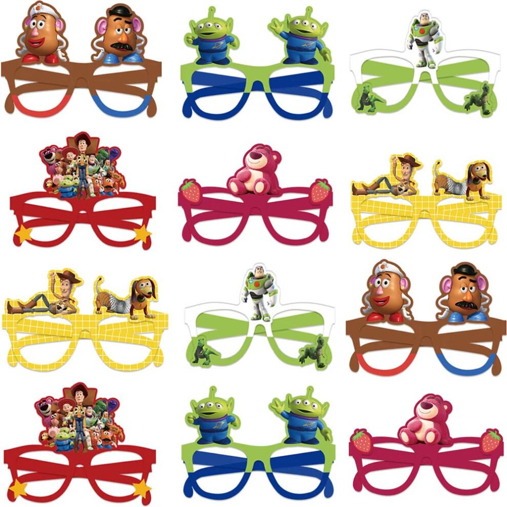(12pcs mask) Toy Story Birthday Party Supplies Buzz Lightyear Party Favors Gift Goodie Bag Glasses Mask Straw Stickers for Kids Pinata Toys