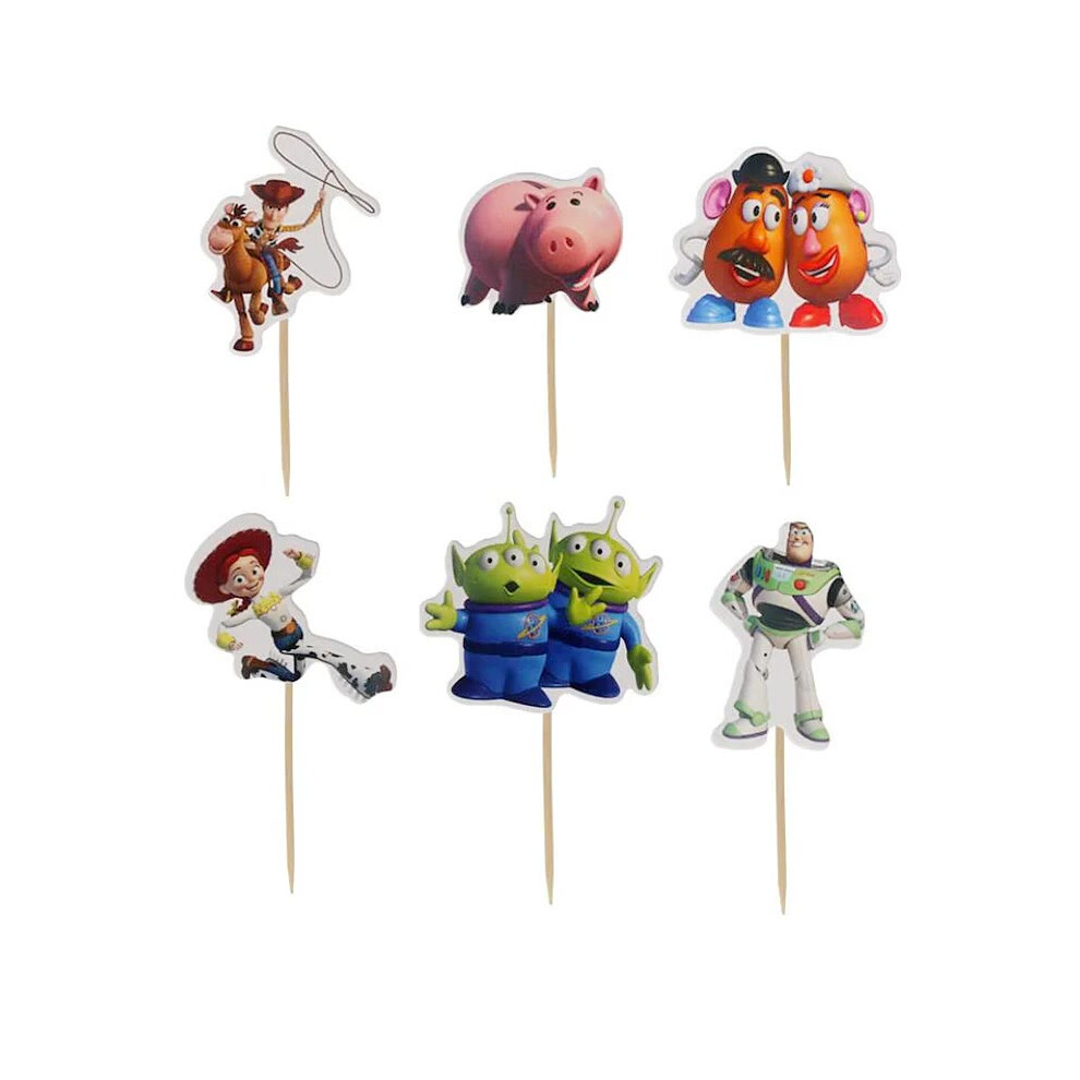 (24pcs cake topper-1) Toy Story Birthday Party Supplies Buzz Lightyear Party Favors Gift Goodie Bag Glasses Mask Straw Stickers for Kids Pinata Toys
