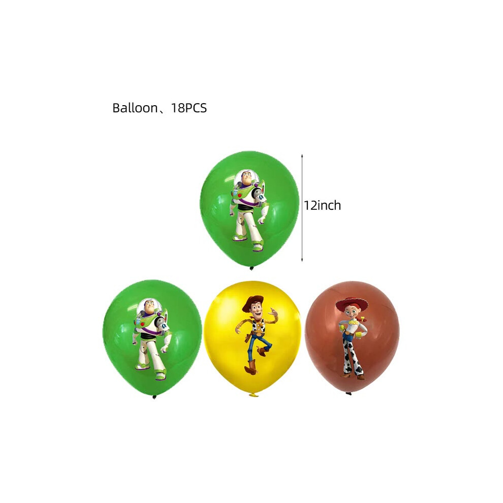 (18pcs balloon) Toy Story Birthday Party Supplies Buzz Lightyear Party Favors Gift Goodie Bag Glasses Mask Straw Stickers for Kids Pinata Toys