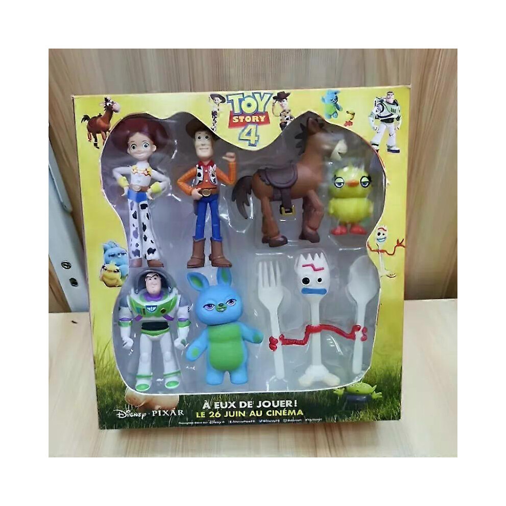 (As show, One size) 7pcs Disney Toy Story 4 Action Figures Toys Woody Jessie Buzz Lightyear Forky Pig Bear Model Dolls Figurine Christmas toy Gifts