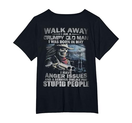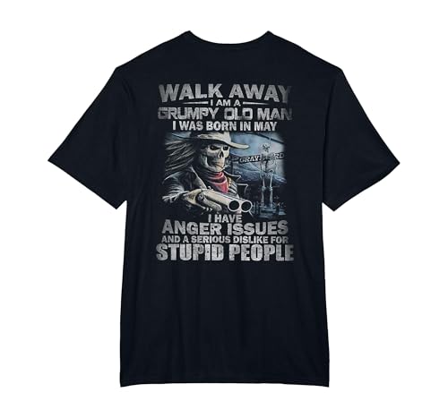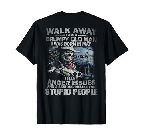 Walk Away I Am A Grumpy Old Man I was Born in May (on Back) T-Shirt, Men, Black, X-Large