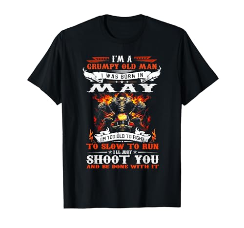 I'm a grumpy old man I was born in May I'm old biker T-Shirt, Men, Black, Large