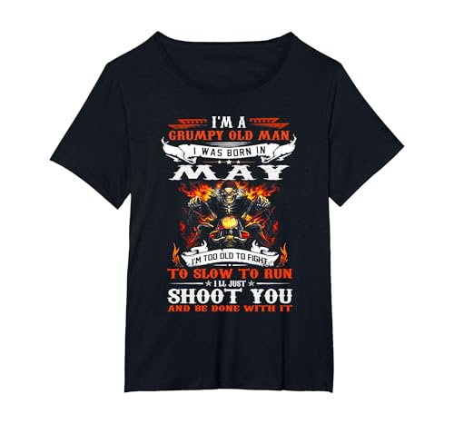 I'm a Grumpy Old Man I was Born in May I'm Old Biker T-Shirt, Women's Plus, Black, 3X