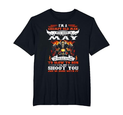 I'm a Grumpy Old Man I was Born in May I'm Old Biker T-Shirt, Men, Black, X-Large