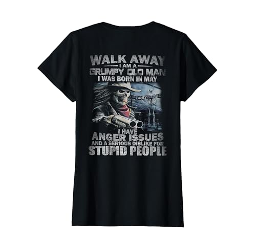 Walk Away I Am A Grumpy Old Man I was Born in May (on Back) T-Shirt, Women, Black, X-Small