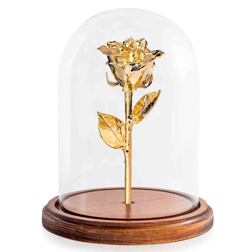 Forever Rose Enchanted Rose Genuine One of a Kind Beauty and The Beast Rose Hand Dipped in 24K Gold & Preserved in Glass Dome Assembled by Hand in The