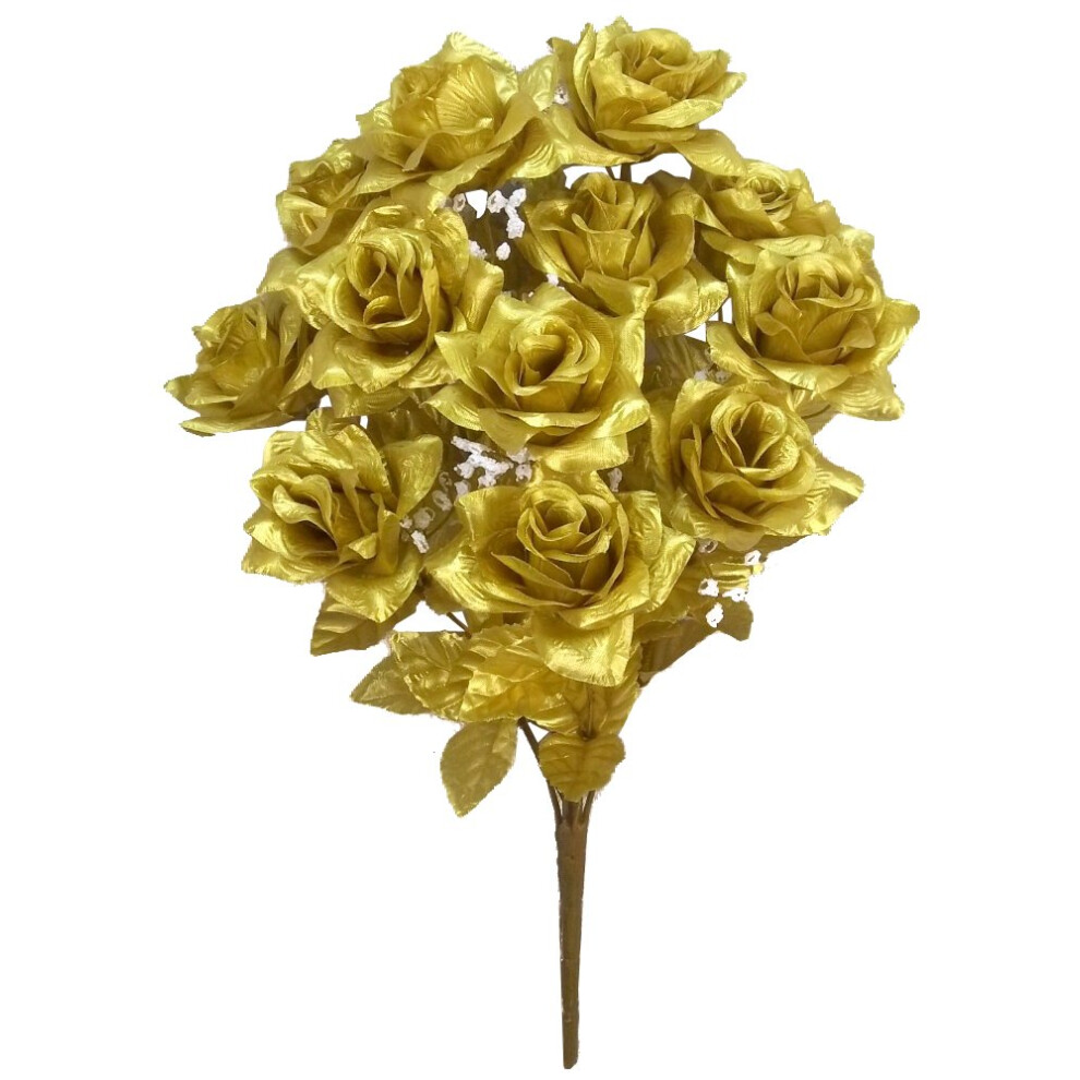 Admired By Nature GPB293G-Gold 12 Stems Artificial Veined Satin Rose Flowers Bush Gold