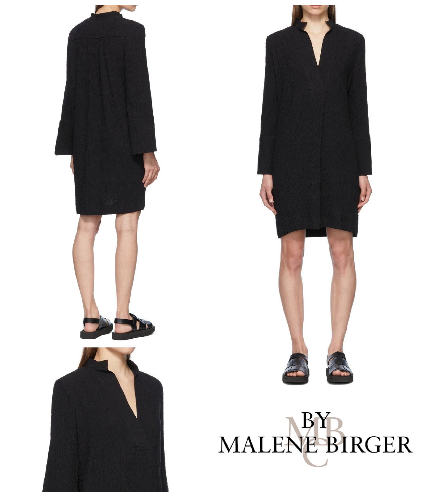 by Malene Birger Dress Size UK 10 Flaines Crinkle Relaxed Fit Vent Sleeve Black