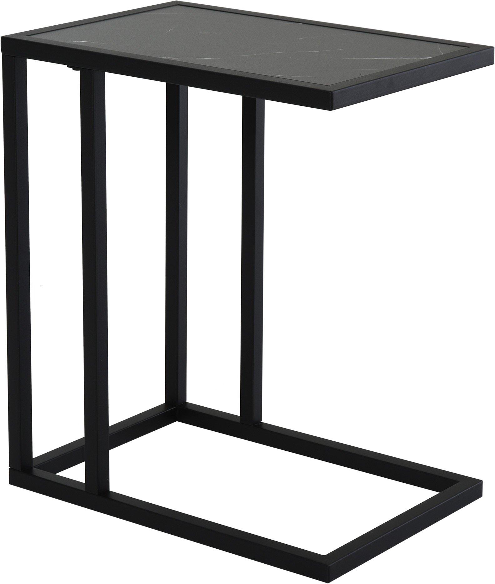 C Shape Side Table Marble-Effect Top Metal Frame Space-Saving